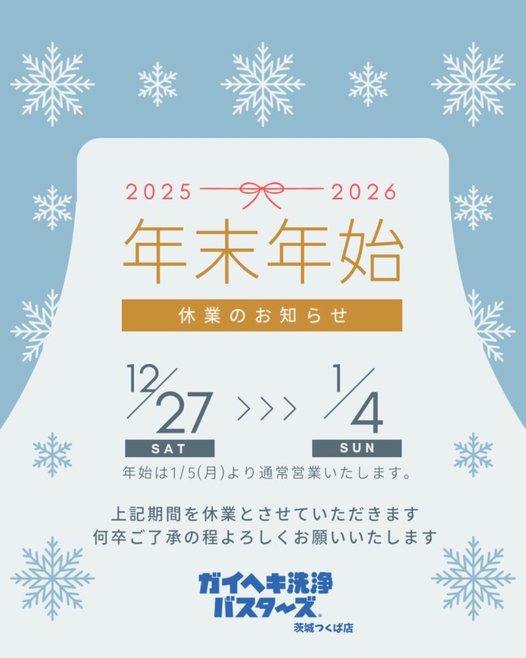 新年のご挨拶🎍 あけましておめでとうございます。旧年中は、ガイヘキ洗浄バスターズ茨城つくば店をご利用 […]